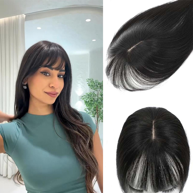 【Straight】Natural Hair Toppers With Bangs -- Transform Your Look in Minutes! Instantly Upgrade Your Style Today!