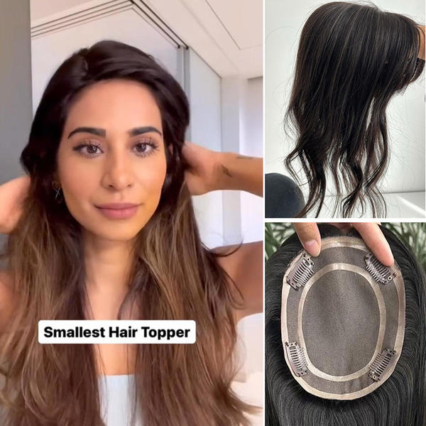 6*7CM Human Hair Toppers for Women Clip in Mono and PU Top 150% Density Toppers Invisible